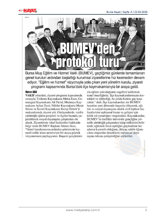 Bursa Muş Eğitim ve Hizmet Vakfı yeni yönetim kurulu ile ilçe kaymakamlarını ziyaret etti.