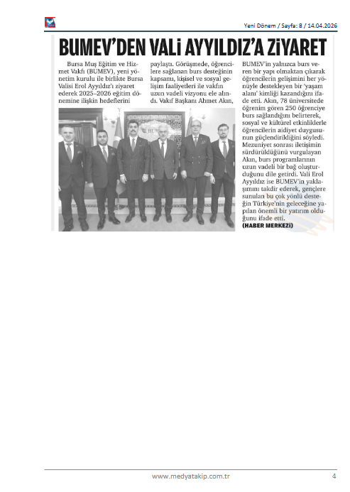 BUMEV yeni yönetim kurulu Bursa Valisi Erol Ayyıldız'ı ziyaret etti.