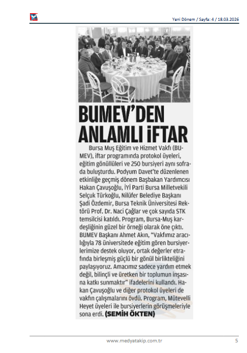 BUMEV'den Anlamlı İftar 18.03.2026 ,